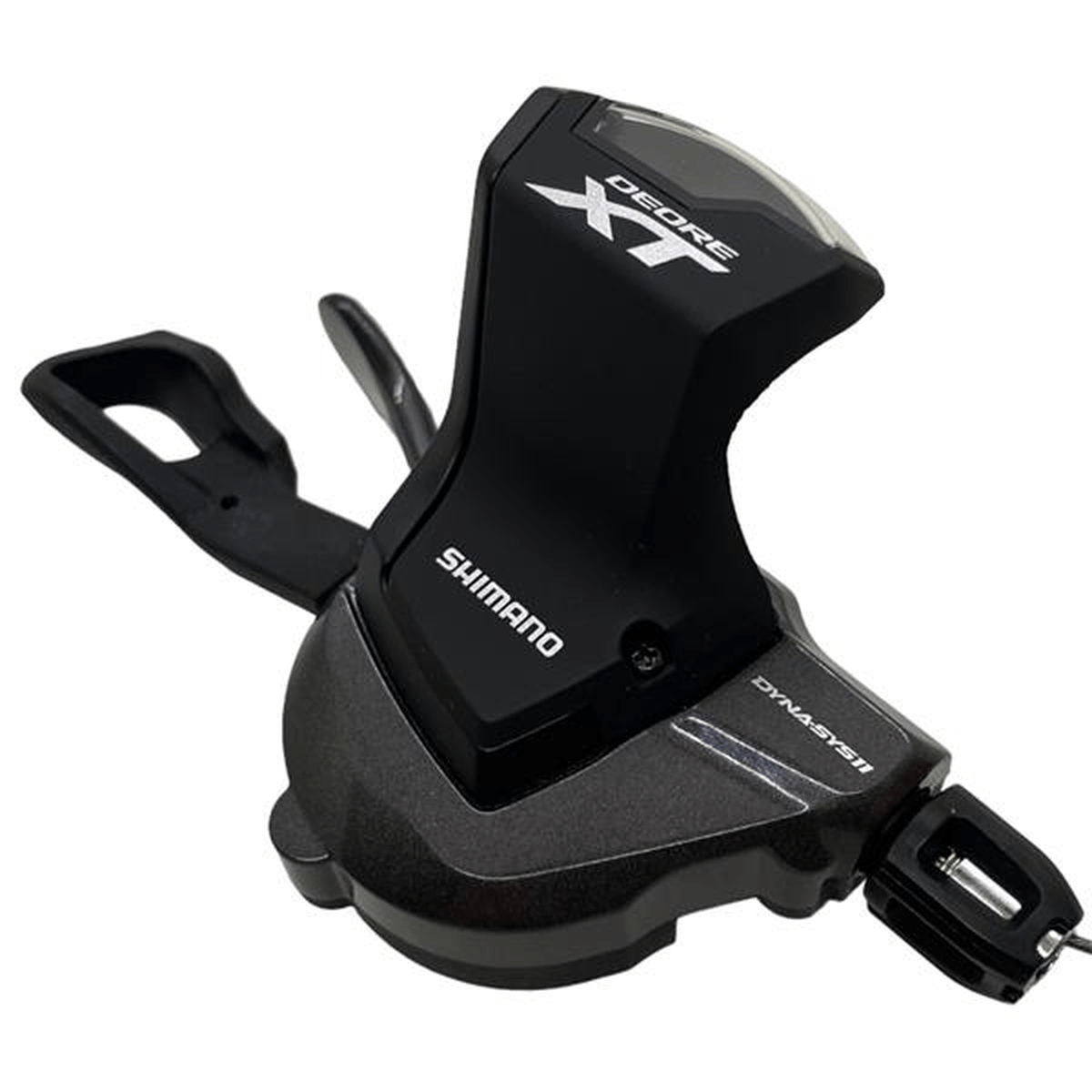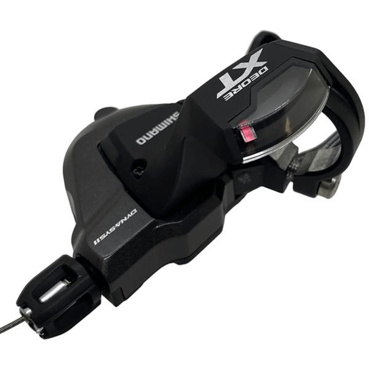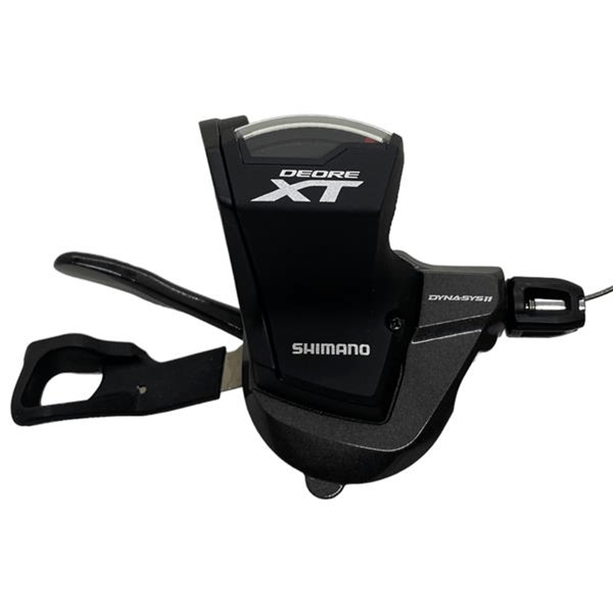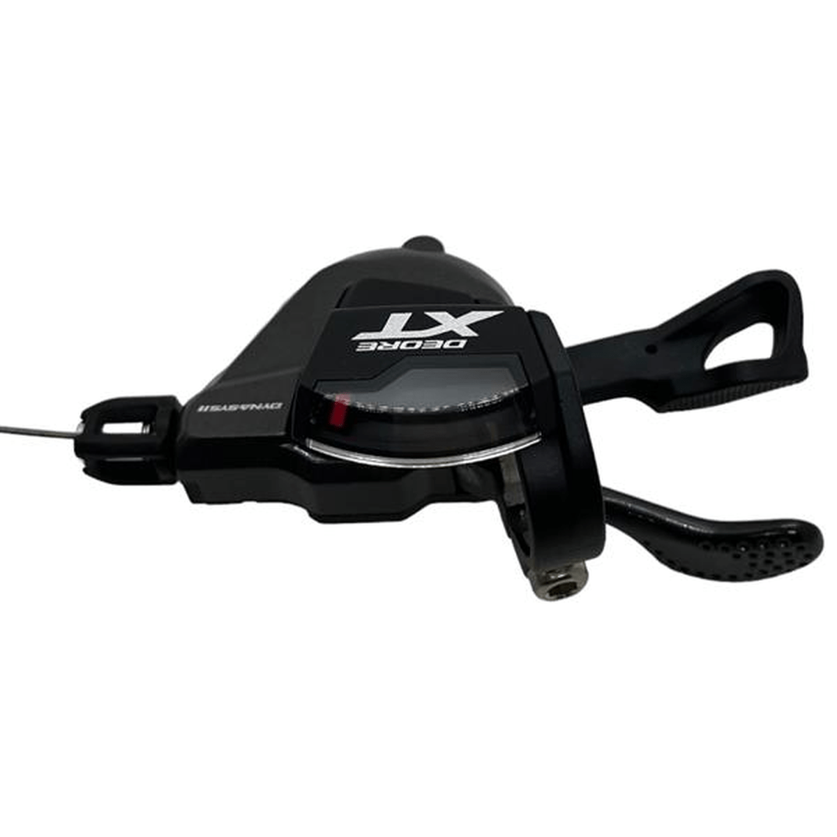 A alavanca de câmbio Rapidfire M8000, da linha Shimano Deore XT, é ideal para trocas rápidas e seguras de marcha no mountain bike, dando aos ciclistas a capacidade de reduzir três marchas em um único movimento, conta com um design ergonômico, corpo do manete longo e textura antideslizante na pá principal.