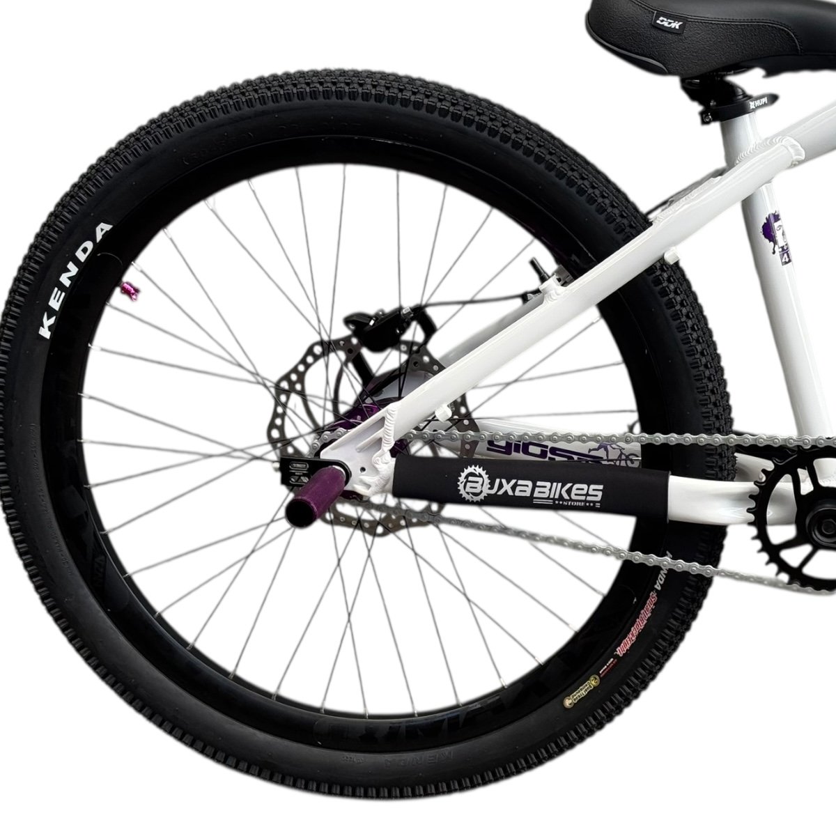 DESCRIÇÃO O quadro 4TRIX foi desenvolvido com base em seus irmãos FRX e DJ, que apesar de terem cedido seus tubos, estes foram rearranjados em uma geometria única e específica para a utilização na modalidade wheeling. A frente do quadro mais baixa, traseira mais curta e outras pequenas alterações, permitem uma pilotagem mais estável e por um tempo maior sob a roda dianteira ou traseira, como sugerem as manobras da categoria. No entanto, a sua geometria também atende a muitos requisitos da modalidade Dirt Jump (DJ), que dependendo do estilo do piloto, pode ser uma outra boa opção. Sugerimos o uso de garfos rígidos (próprios para o wheeling) ou garfo com suspensão 80-100mm. ESPECIFICAÇÕES GIOS 4TRIX GRAU/WHEELING BUXA BIKES STORE Quadro Gios 4TRIX; Suspensão Absolute Brutus DJ PRO 100mm; Guidão Gios (cor e modelo conforme disponibilidade do estoque); Mesa Tanke (cor e modelo conforme disponibilidade do estoque); Single Speed (apenas uma marcha); Freio traseiro hidráulico Shimano MT200; Disco 203mm; Manoplas Gios (cor e modelo conforme disponibilidade do estoque); Selim DDK; Pedivela integrado Absolute Prime; Pedal plataforma alumínio; Aro 26 Vzan Vmaxx; Pneu Flame 26x2.125 Canote aluminio; Cubos barulhentos GTA/TANKE (conforme disponibilidade de estoque); GARANTIA 3 meses Nas trilhas ou na cidade, vá de bike!! BUXA BIKES STORE