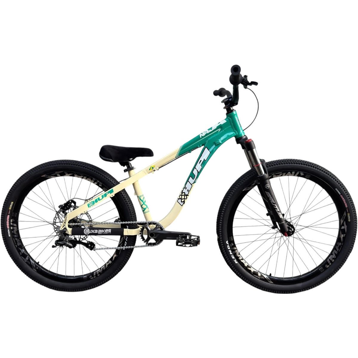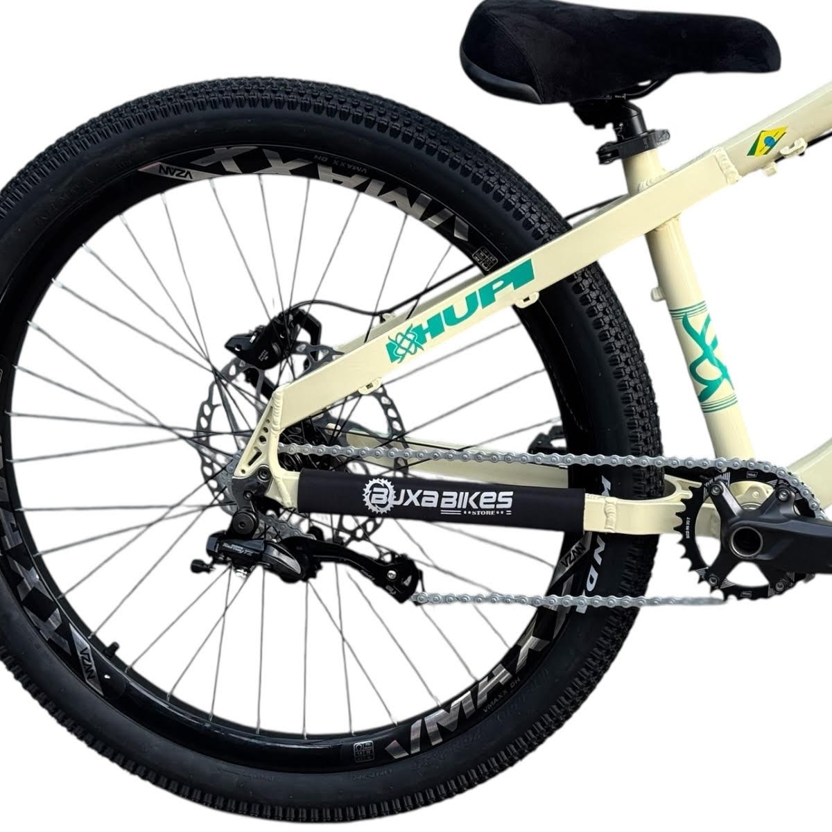 DESCRIÇÃO Se você procura um quadro que une design vibrante, desempenho superior e versatilidade, o Quadro HUPI Naja é a escolha certa. Com geometria modernizada e fabricação em alumínio 6061 T6, ele oferece conforto, resistência e agilidade, ideal para trilhas leves e pedais urbanos. Alta durabilidade: Construção em alumínio 6061 T6, garantindo leveza e resistência para diferentes desafios. Geometria otimizada: Desenvolvida para oferecer conforto e controle em qualquer tipo de terreno. ESPECIFICAÇÕES HUPI NAJA GRAU/WHEELING BUXA BIKES STORE Quadro HUPI NAJA 2015 (seminovo mas excelente estado); Suspensão Absolute Brutus DJ PRO 100mm; Guidão Hupi PUB 2025 800mm; Mesa Elleven; Single Speed (apenas uma marcha); Freio traseiro hidráulico Shimano Deore MT401; Disco Shimano RT66 203mm Manoplas Gios; Selim Funsea; Pedivela integrado Shimano Deore, movimento central Shimano novo (pedivela seminovo mas excelente estado); Pedal plataforma; Aro 26 Vzan Vmaxx 2025; Pneu Kenda Small Block 26x2.35; Canote alumínio; Cubo barulhento GTA; GARANTIA 3 meses Nas trilhas ou na cidade, vá de bike!! BUXA BIKES STORE
