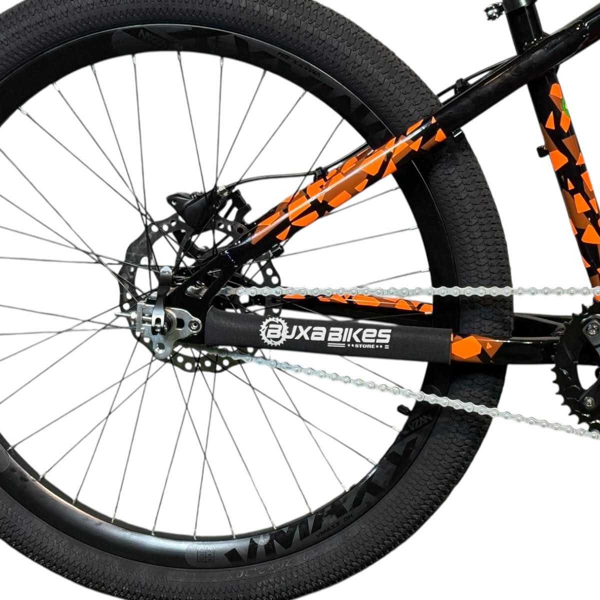 DESCRIÇÃO Se você procura um quadro que une design vibrante, desempenho superior e versatilidade, o Quadro HUPI Naja V9 com Gancheira Horizontal é a escolha certa. Com geometria modernizada e fabricação em alumínio 6061 T6, ele oferece conforto, resistência e agilidade, ideal para trilhas leves e pedais urbanos. Alta durabilidade: Construção em alumínio 6061 T6, garantindo leveza e resistência para diferentes desafios. Geometria otimizada: Desenvolvida para oferecer conforto e controle em qualquer tipo de terreno. Versatilidade de configuração: A gancheira horizontal permite personalização, incluindo montagem Single Speed. ESPECIFICAÇÕES HUPI NAJA GRAU/WHEELING BUXA BIKES STORE Quadro HUPI NAJA 2025; Suspensão Absolute Brutus FR PRO 150mm; Guidão Gios voador 700mm; Mesa Lunjee; Single Speed (apenas uma marcha); Freio traseiro hidráulico Shimano MT200; Manoplas Gios; Selim DDK 243; Pedivela integrado; Pedal plataforma; Aro 26 Vzan Vmaxx; Pneu Kenda Kiniption 26x2.30 Canote alumínio; Cubo barulhento GTA; GARANTIA 3 meses Nas trilhas ou na cidade, vá de bike!! BUXA BIKES STORE