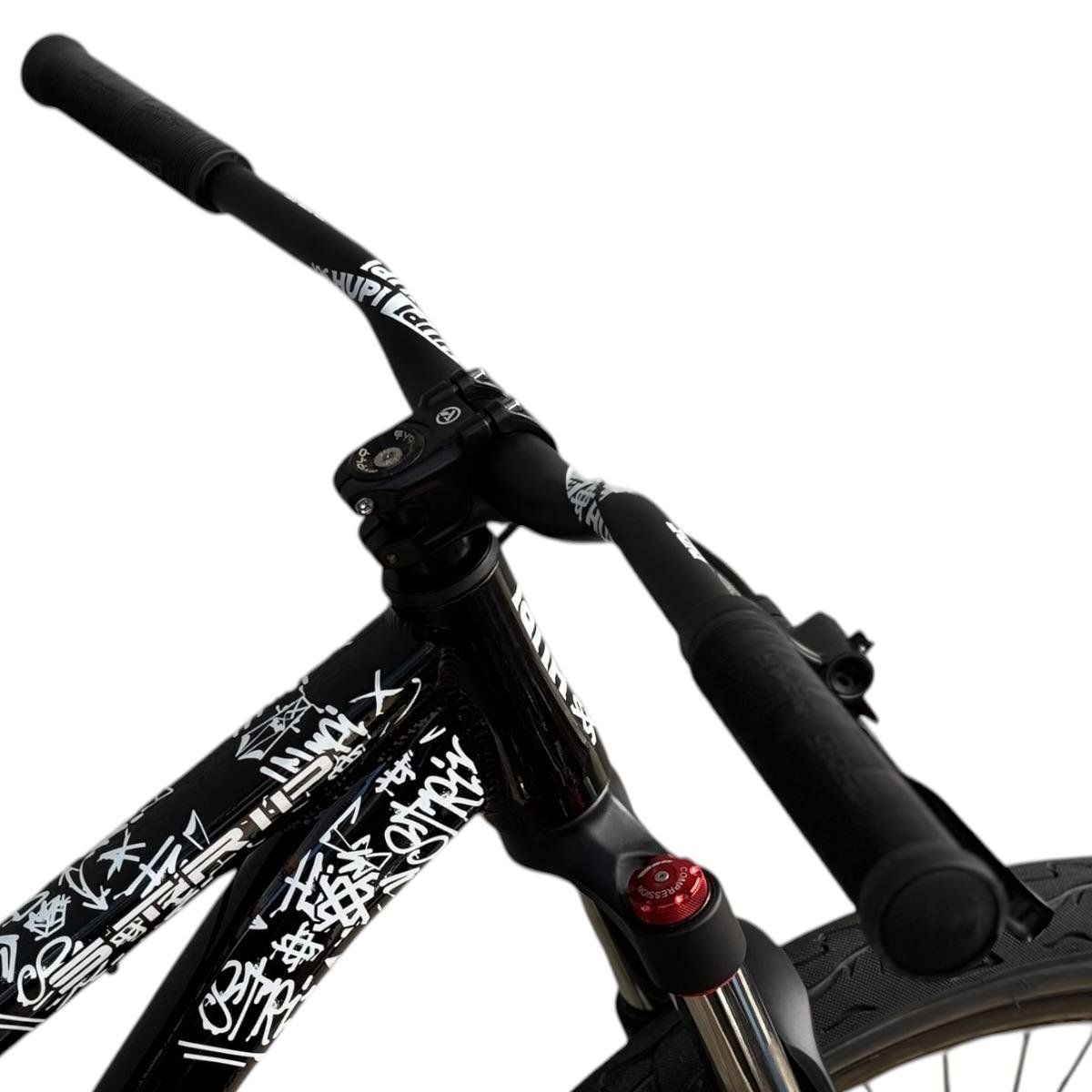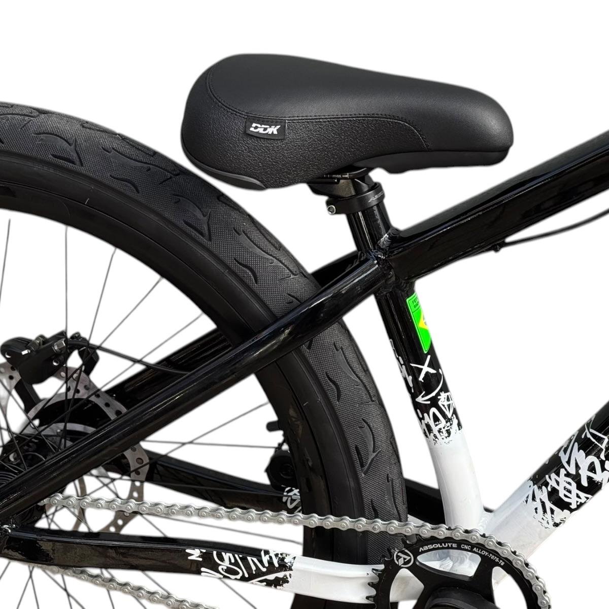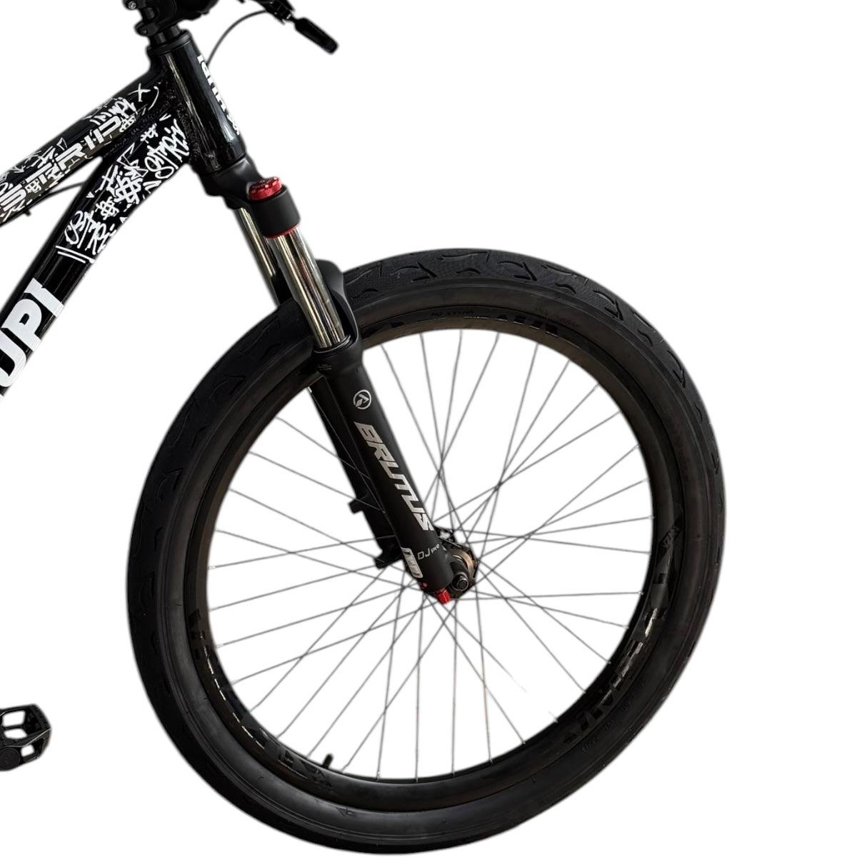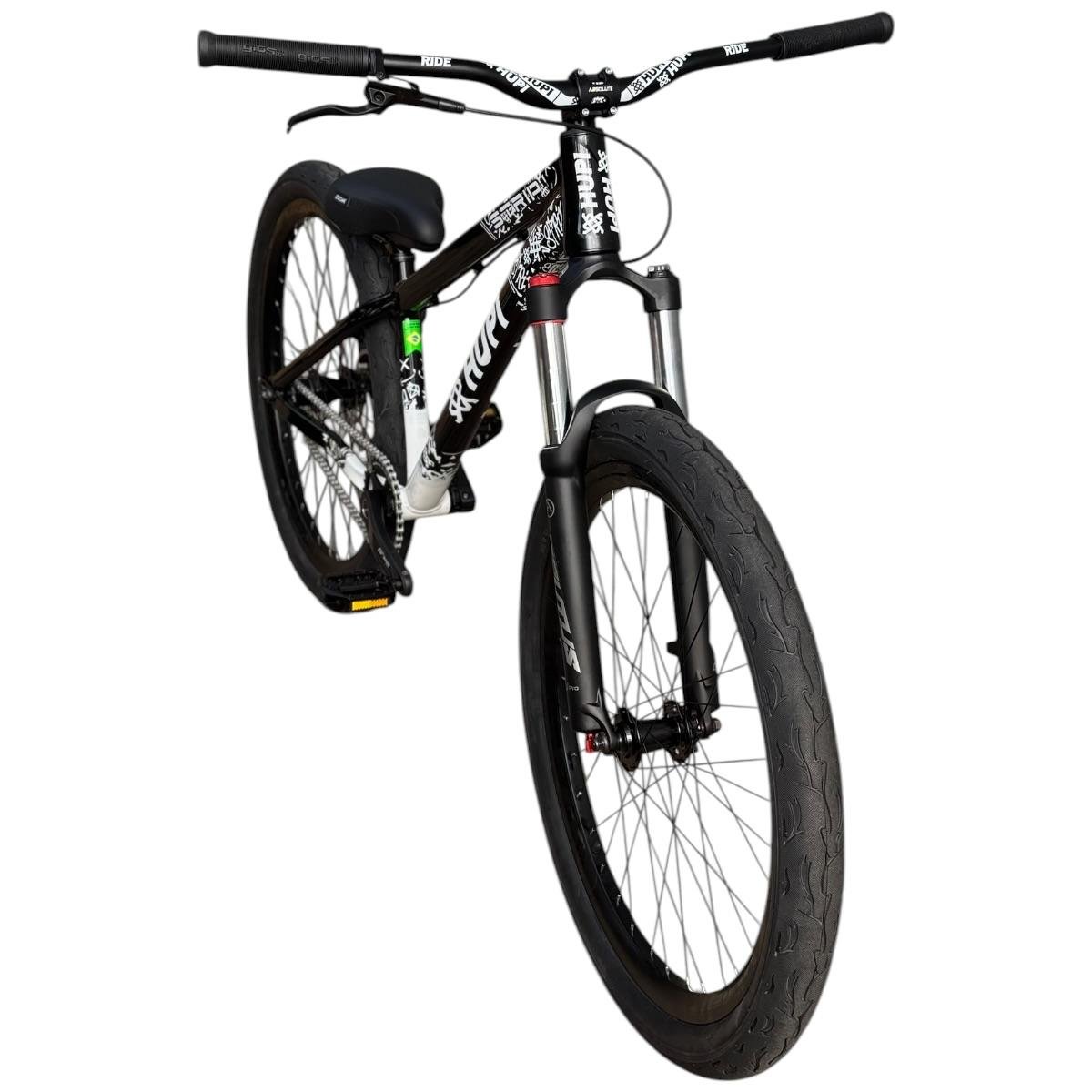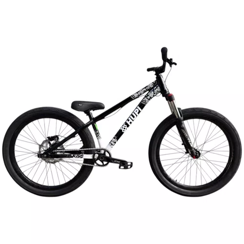 Sua geometria compacta favorece controle e estabilidade da bicicleta, enquanto o triângulo traseiro curto contribui para respostas rápidas nas manobras. A pintura na cor preta com grafismos HUPI agrega identidade visual marcante ao produto final, criando um conjunto atrativo para montagens de bikes com estilo e personalidade.