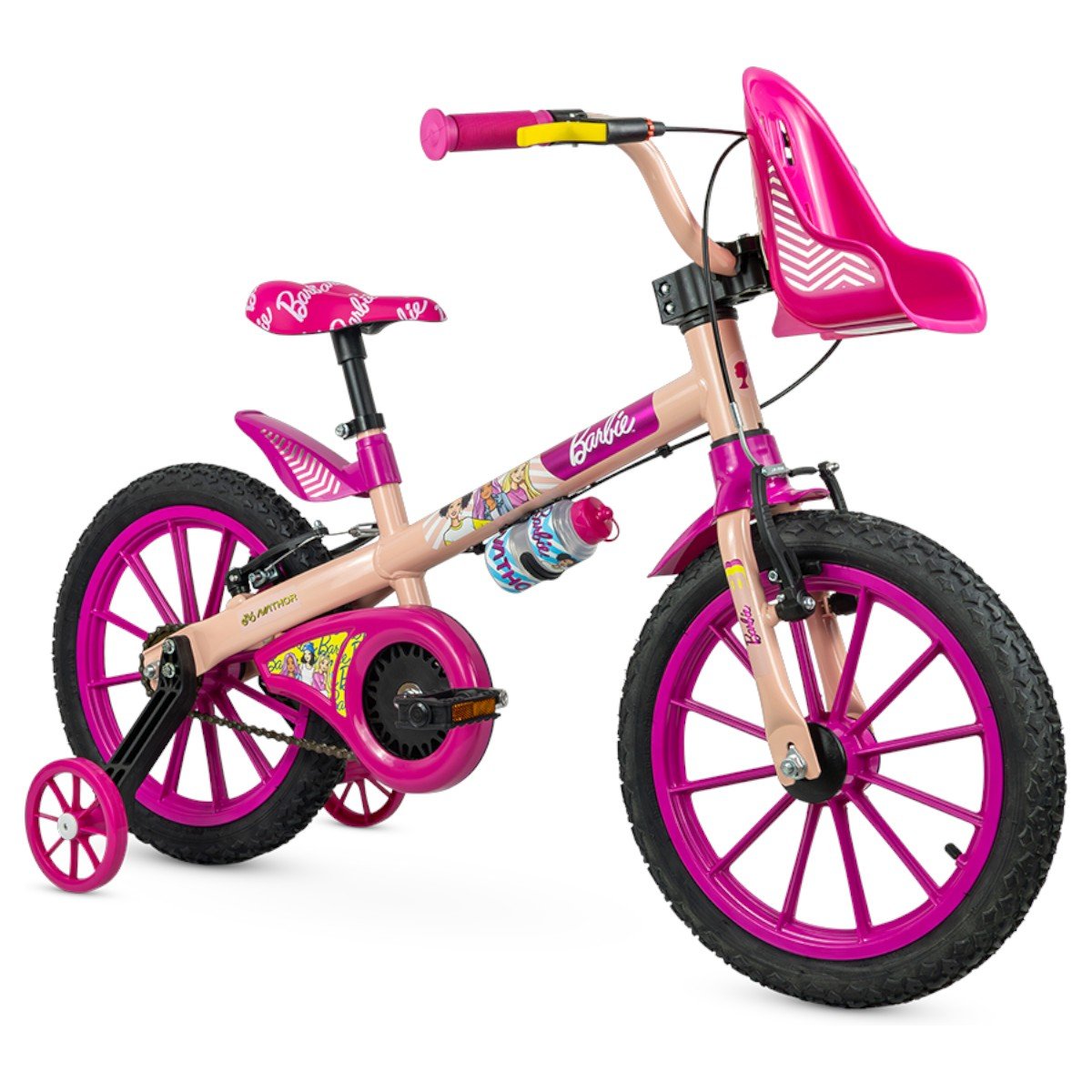 BICICLETA INFANTIL ARO 16 FEMININA NATHOR BARBIE SALMAO/ROSA