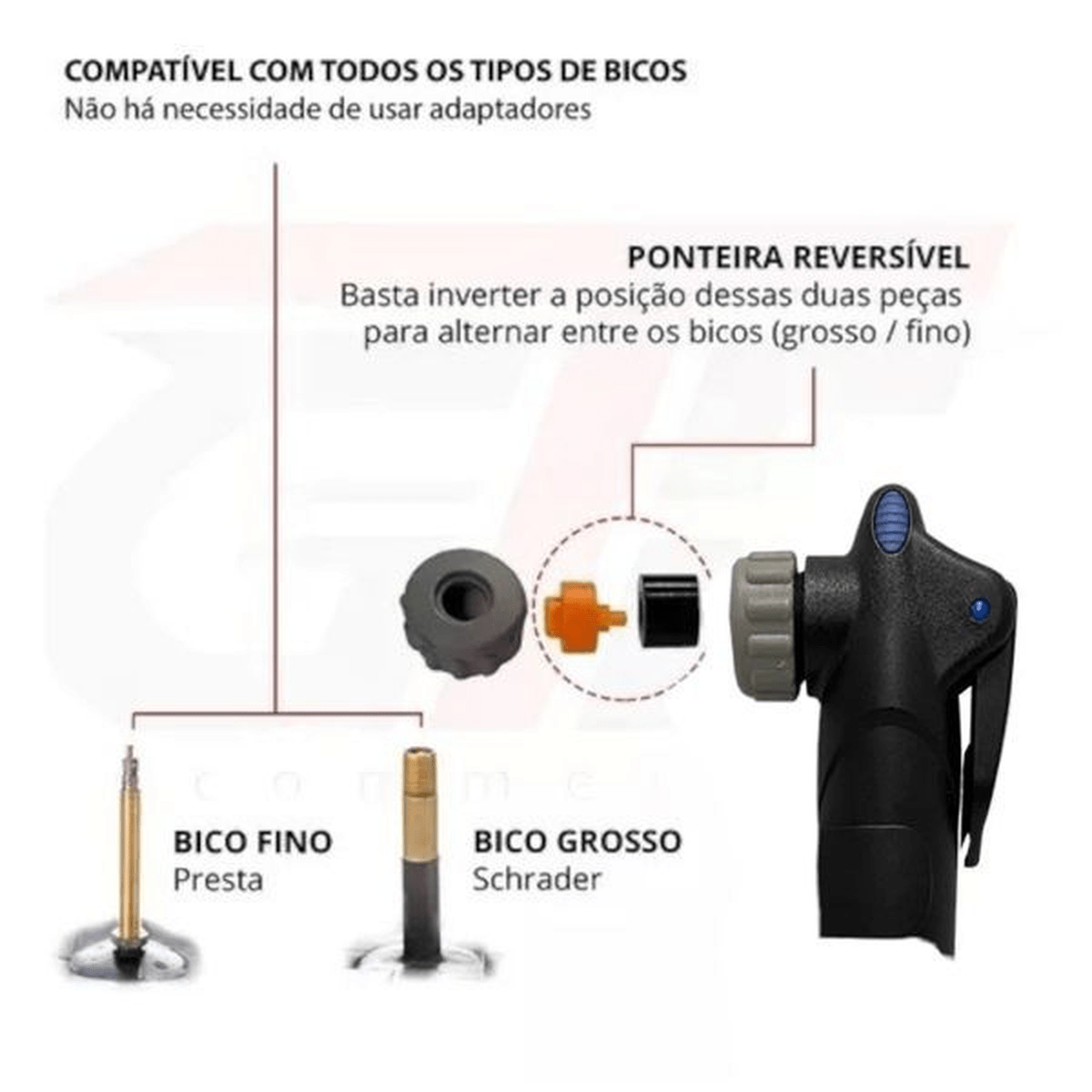 Ponteira reversível - Presta e Schrader
