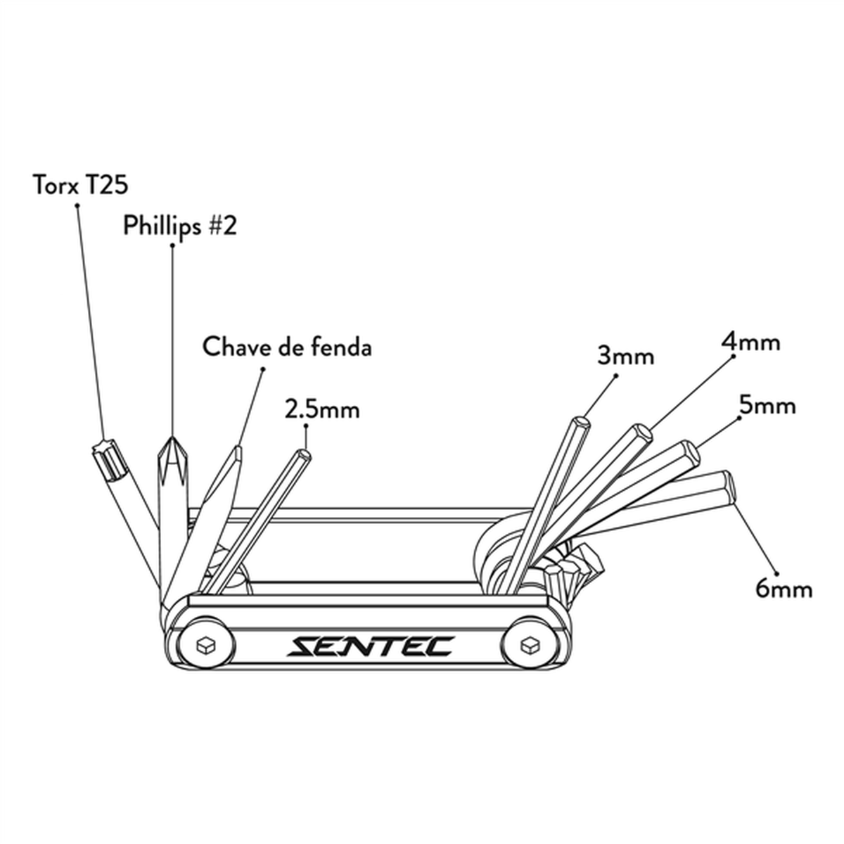 Construída em frame de alumínio, acabamento em CNC e com ferramentas em aço vanádio, conta com 8 chaves essenciais: