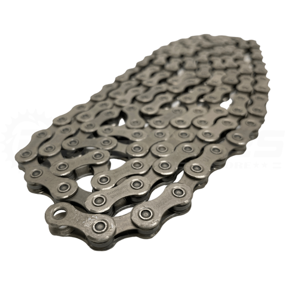 A CN-HG701-11 é construída com design assimétrico no padrão HG-X11 e inclui ainda um pino de corrente reserva, para uso após a abertura da corrente em manutenções.