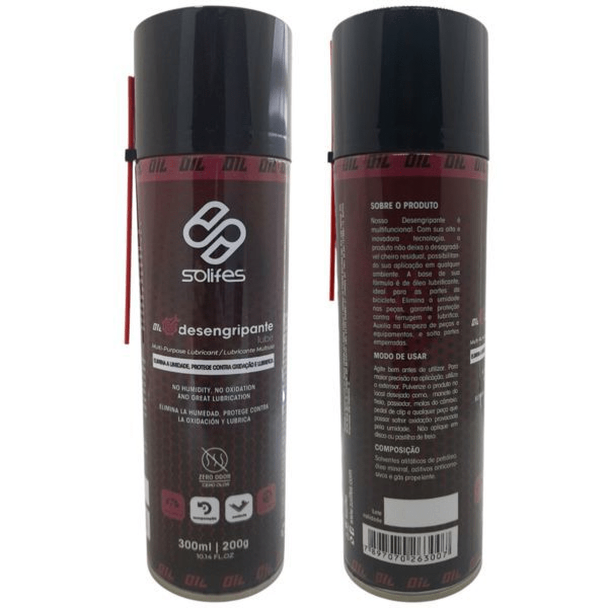 DESCRIÇÃO Com o multifuncional DESENGRIPANTE LUBE SOLIFES você pode desemperrar peças com facilidade sem ressecar borrachas e partes plásticas, além de garantir uma finalização lubrificada e protegida. Tenha tudo que você precisa em um só produto! BENEFÍCIOS O multifuncional DESENGRIPANTE LUBE SOLIFES foi confeccionado com alta tecnologia inovadora para proporcionar os melhores resultados após sua aplicação. Elimina umidade e garante proteção contra ferrugem. Cumpre seu papel com eficácia limpando e desoxidando peças e equipamentos no final as lubrificando, além de soltar partes emperradas garantindo proteção e lubrificação por mais tempo. DIFERENCIAIS Multifuncional. Confeccionado com tecnologia inovadora. Garante proteção contra ferrugem. Desoxida peças e as lubrifica. Solta partes emperradas MODO DE USO Agite antes de usar. Pulverize a uma distância de cerca de 15 cm, dirigindo o jato aerossol para parte a ser tratada. Para desengripar partes pouco acessíveis encaixe o tubo plástico (prolongador) que acompanha a embalagem no orifício apropriado à válvula de pressão e proceda a aplicação como descrito anteriormente. Aplicar somente em peças metálicas. GARANTIA 3 meses Nas trilhas ou na cidade, vá de bike!! BUXA BIKES STORE