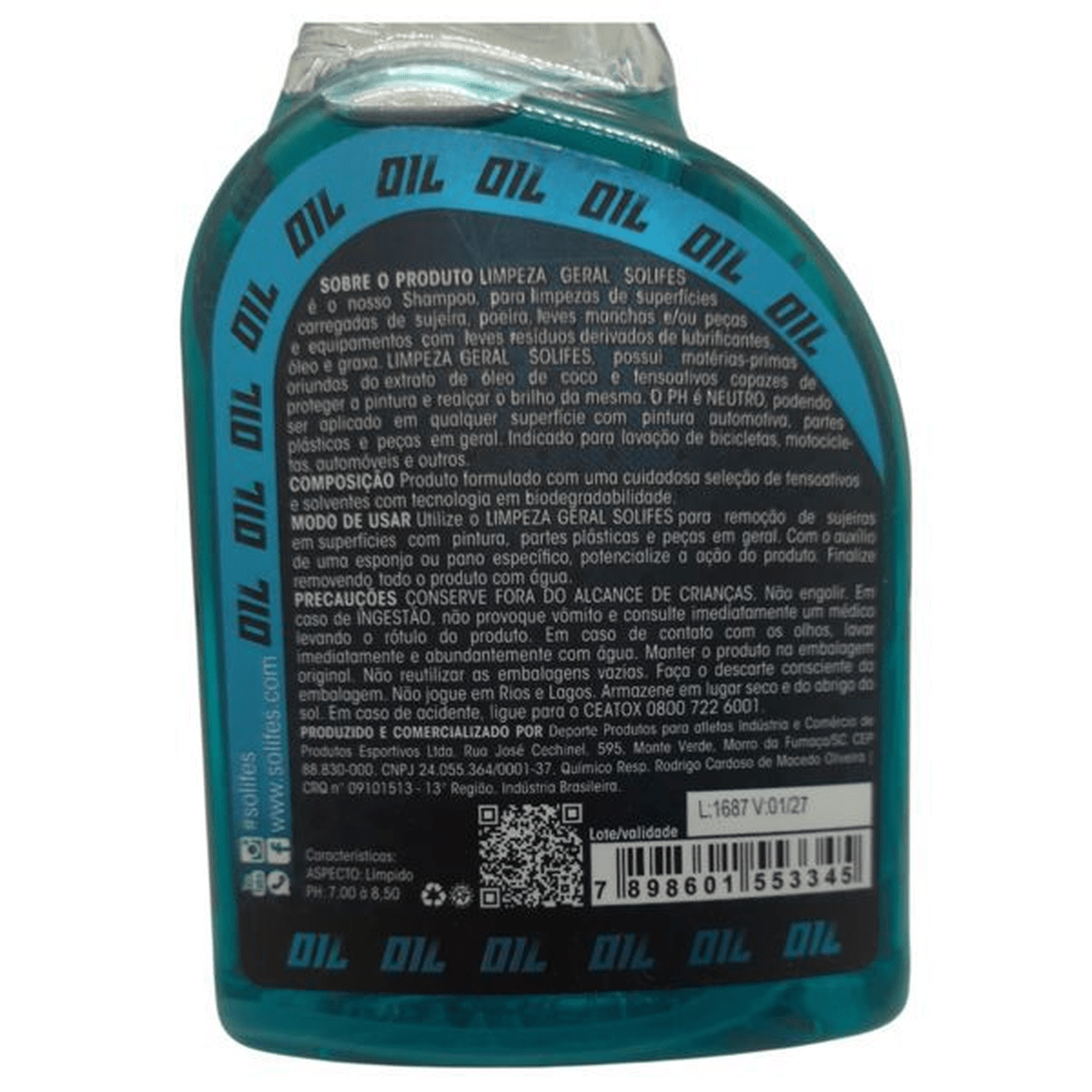 DESCRIÇÃO Gerando uma limpeza profunda de maneira fácil, o LIMPEZA GERAL BIO SOLIFES está aqui para ajudar a facilitar a limpeza de superfícies com pinturas, criando junto uma camada protetora e entregando um brilho excepcional após a lavagem, tudo isso sem agredir de nenhuma forma o meio ambiente, pois os melhores resultados agora são entregues de maneira fácil praticidade e com o máximo de segurança. BENEFÍCIOS Desenvolvido para limpeza de superfícies carregadas de sujeiras como poeira, leves manchas de resíduos leves de derivados de lubrificantes óleo e graxa em peças e equipamentos. O LIMPEZA GERAL BIO da SOLIFES deve ser usado especificamente para pinturas especiais, substituindo facilmente o shampoo ou detergente, sendo usado sem qualquer risco de mancha ou ressecamento de partes plásticas. Facilita a limpeza de superfícies com pinturas especiais e cria uma camada protetora após a lavagem. Recomendado para lavar Bikes, Motos, Automóveis e outros. DIFERENCIAIS Substitui shampoo e detergente. Matérias primas derivadas do óleo de coco. PH neutro, podendo ser aplicado em qualquer superfície com pintura automotiva. Cria uma camada protetora após a lavagem. MODO DE USO Aplique na bike com auxílio de uma esponja, pano ou com o gatilho aplicador. Deixe agir por cerca de 1 minuto, não mais que isso, e passe a esponja em toda região suja. Logo retire bem o produto com água. Se for preciso repita a operação. Após a limpeza seque toda bicicleta. Não faça a lavagem no sol para evitar manchas. Não deixe o produto secar na bike. GARANTIA 3 meses Nas trilhas ou na cidade, vá de bike!! BUXA BIKES STORE