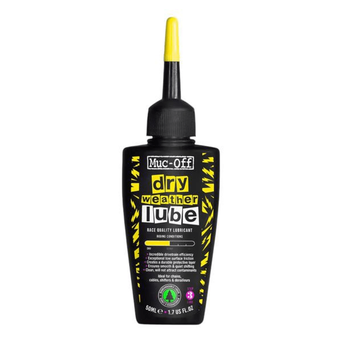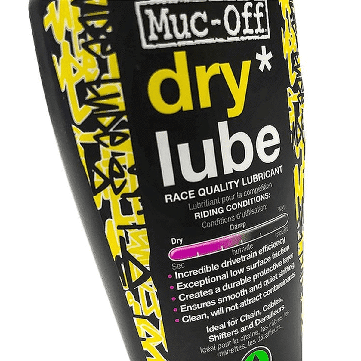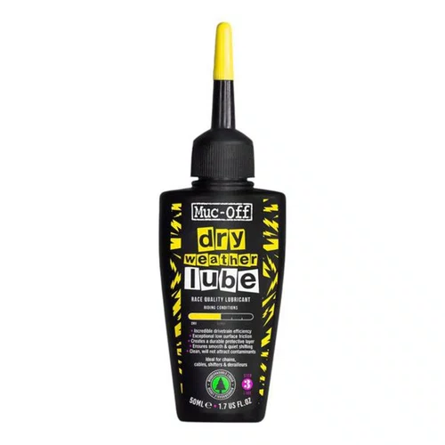 O Muc-Off Dry Lube é um lubrificante para correntes de bicicleta formulado especificamente para se destacar em alta durabilidade e alto poder de penetração em condições extremas em que os lubrificantes normais não suportariam. Sua fórmula de ponta é derivada de ingredientes naturais e fabricada completamente a partir de fontes renováveis, além de ser excelente em condições secas e empoeiradas.