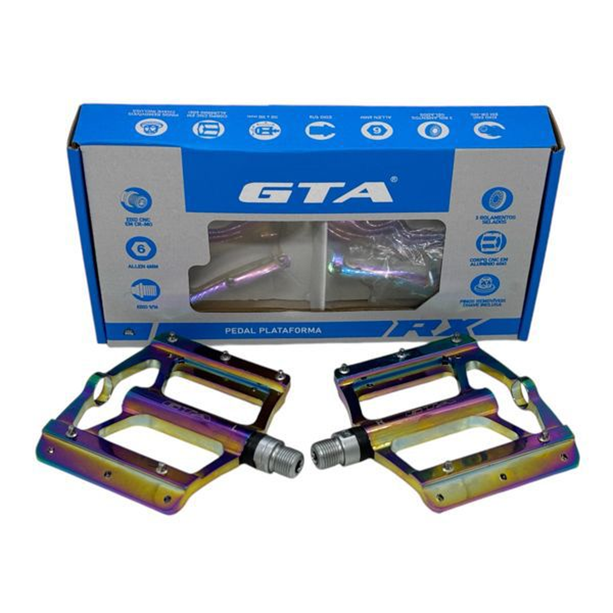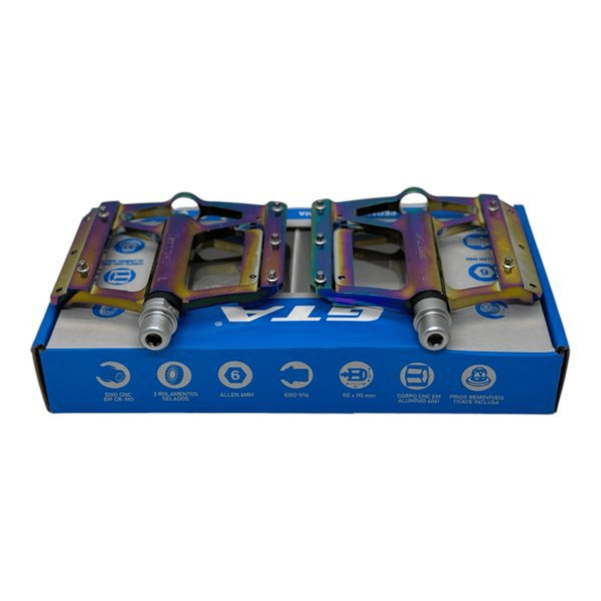 DESCRIÇÃO LANÇAMENTO GTA!! PEDAL GTA ALUMINIO ROSCA GROSSA ROLAMENTO SELADO COM EIXO EM CR-MO. ESPECIFICAÇÕES Corpo CNC em alumínio 6061; Eixo CNC em cr-mo; Eixo 9/16 (rosca grossa), indicado para wheeling, grau, rl, mountain bike; Allen 6; Rolamentos selados; Pinos removíveis com chave inclusa; GARANTIA 3 meses Nas trilhas ou na cidade, vá de bike!! BUXA BIKES STORE