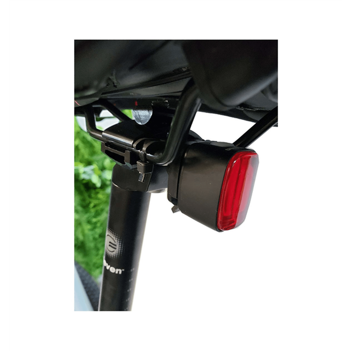Com adaptador para fixação no selim.