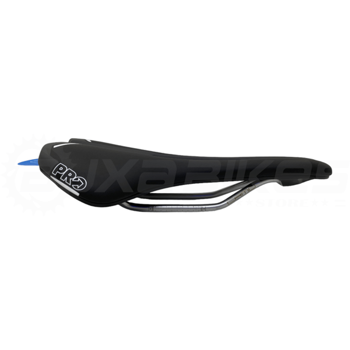 Canal de alivio anatômico na região central do selim para redirecionar o peso e reduzir a pressão em uma posição de pilotagem mais agressiva;